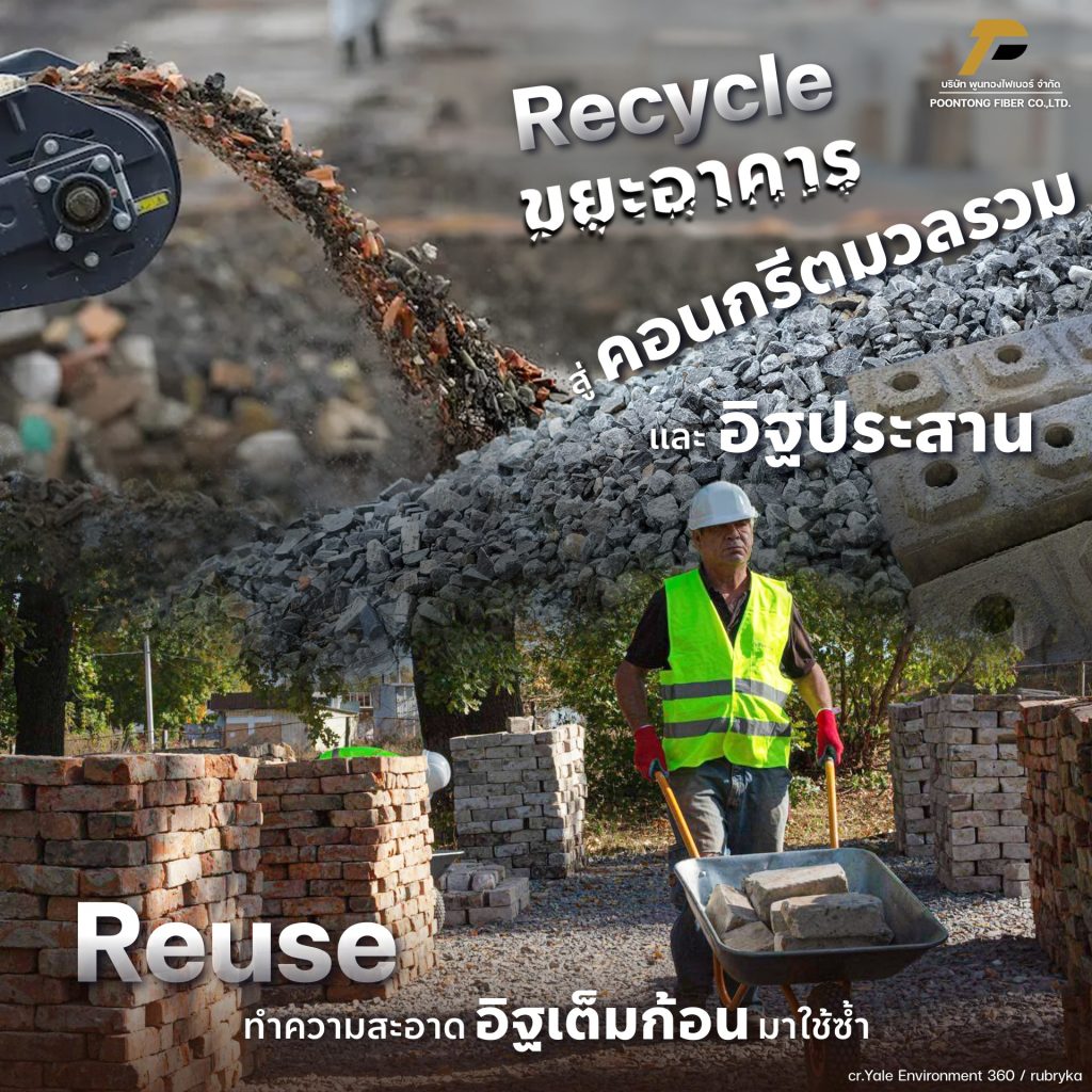 มีการใช้เครื่องจักรบดคอนกรีตและอิฐในพื้นที่เกิดเหตุ เพื่อลดค่าขนส่งและลดการปล่อยก๊าซคาร์บอนจากการเคลื่อนย้ายวัสดุหนัก เศษปูนที่บดแล้วจะถูกแปรรูปเป็น “มวลรวม” (Aggregate) สำหรับผสมคอนกรีตใหม่ หรือทำเป็นอิฐประสาน (Interlocking Bricks) ที่ชาวบ้านสามารถนำไปก่อสร้างบ้านหรือโรงเรือนได้ด้วยตนเองอย่างรวดเร็ว